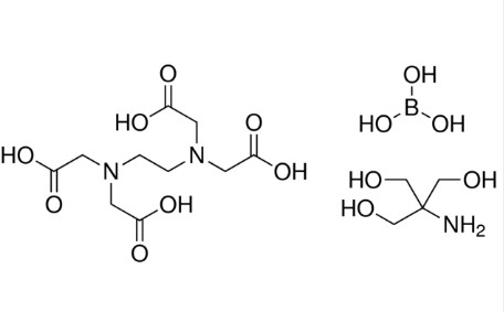 Prepared with Biotechnology Performance Certified Trizma base (Product Code T6066) and Molecular Biology Reagents boric acid (Product Code B6768) and EDTA disodium salt (Product Code E5134).