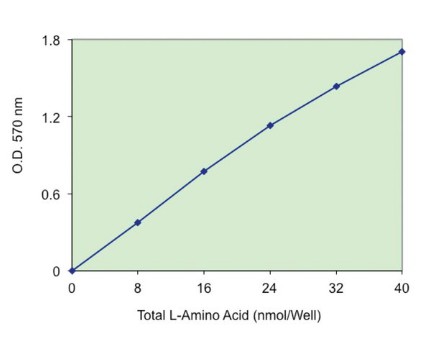 In this assay, L-Amino Acid concentration is determined by a coupled enzyme reaction, which results in a colorimetric (570 nm)/fluorometric (λex = 535/λem = 587 nm) product, proportional to the L-Amino Acids present. Glycine is not detectable by this assay.
