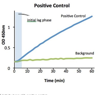 The Aspartate Aminotransferase Activity Assay kit provides a simple and direct procedure for measuring AST activity in a variety of samples. In this kit, the transfer of an amino group from aspartate to α-ketoglutarate results in the generation of glutamate, resulting in the production of a colorimetric (450 nm) product proportional to the AST enzymatic activity present. One unit of AST is the amount of enzyme that will generate 1.0 μmole of glutamate per minute at pH 8.0 at 37 °C.