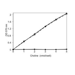 In this assay, choline concentration is determined by a coupled enzyme reaction, which results in a colorimetric (570 nm)/fluorometric (λex = 535/λem = 587 nm) product, proportional to the choline present. Acetylcholine levels can be determined by adding acetylcholinesterase to the reaction, which hydrolyzes acetylcholine to choline and acetate.