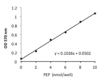 PEP concentration is determined by a coupled enzyme assay, in which PEP is converted to ATP and pyruvate, resulting in a colorimetric (570 nm)/fluorometric (λex = 535/λem = 587 nm) product, proportional to the PEP present.