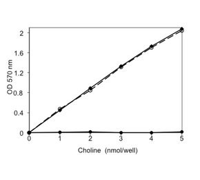 In this assay, choline concentration is determined by a coupled enzyme reaction, which results in a colorimetric (570 nm)/fluorometric (λex = 535/λem = 587 nm) product, proportional to the choline present. Acetylcholine levels can be determined by adding acetylcholinesterase to the reaction, which hydrolyzes acetylcholine to choline and acetate.