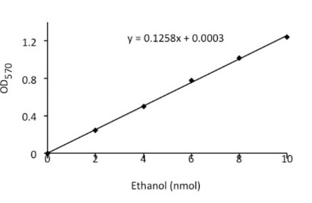 Ethanol concentration is determined by a coupled enzyme reaction, which results in a colorimetric (570 nm)/fluorometric (λex = 535/λex = 587 nm) product, proportional to the ethanol present. The Ethanol Assay Kit provides a simple and reliable method for the quantification of ethanol in serum, plasma, and other body fluids as well as in beverages and growth media.