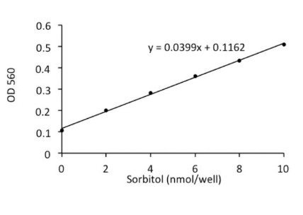 In this assay, D-sorbitol is oxidized to fructose with the proportional development of intense color with an absorbance maximum at 560 nm. The assay is useful in the range of 0.1-10 nmoles of D-sorbitol per sample.