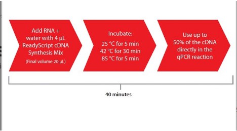 ReadyScript® cDNA Synthesis Mix has been used for complementary DNA (cDNA) synthesis from total/mRNA[6][4] in 2-step reverse transcription polymerase chain reaction (RT-PCR) and quantitative reverse transcription polymerase chain reaction (RT-qPCR)[5] assays for gene expression studies.[3]