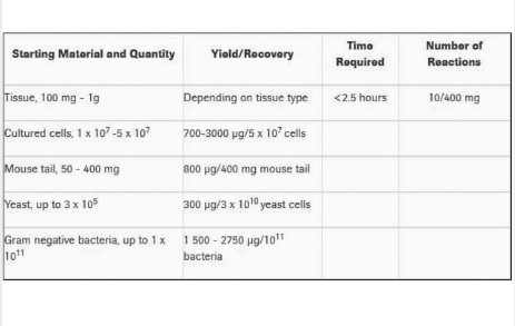 DNA Isolation Kit for Cells and Tissues has been used to isolate DNA from a wide variety of starting materials. The isolated DNA is suitable for many molecular biology applications: