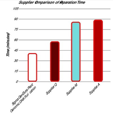 Several micrograms of DNA can be obtained from up to 100 mg of fresh tissue or 10 mg of freeze-dried material in less than an hour. Plant tissue is disrupted by grinding in liquid nitrogen and the DNA is released with detergent and chaotrope. Proteins, polysaccharides, and cell debris are eliminated with a 10 minute precipitation procedure followed by centrifugation through a filtration column, included in the kit. The genomic DNA is purified further by a silica bind-wash-elute procedure in microcentrifuge spin columns. The purified DNA is greater than 20 kb in length.