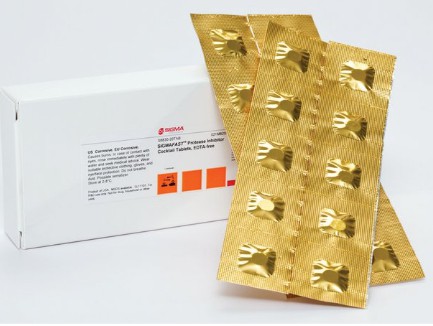 SIGMAFAST™ Protease Inhibitor Cocktail Tablets, EDTA-Free is a tableted formulation containing water-soluble protease inhibitors with broad specificity for the inhibition of serine, cysteine, aspartic and metalloproteases. The tablets have been formulated to be compatible with sample processing by immobilized metal affinity chromatography (IMAC) such as used for the purification of histidine-tagged proteins. The tablets contain no strong metal chelators, such as EDTA, which might interfere with IMAC processing. Finally, the tablets contain a unique, proprietary formulation including a pepstatin A salt to provide additional protection not normally obtained in a tablet format.